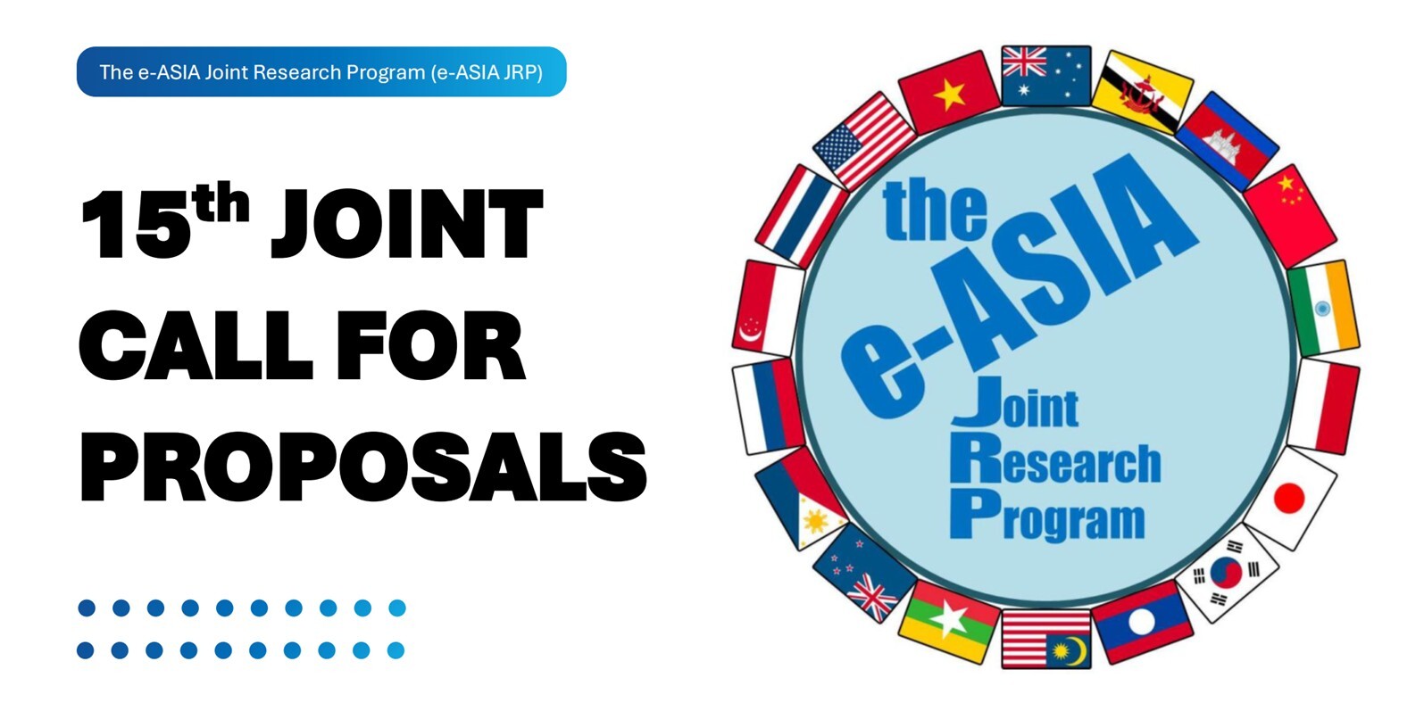 The 15th Call for Proposals under the e-ASIA JRP covers three Fields of Cooperations: 1) Agriculture, 2) Alternative Energy, and 3) Health Research. Deadline: 31 March 2026, 17:00 (ICT, UTC+7).